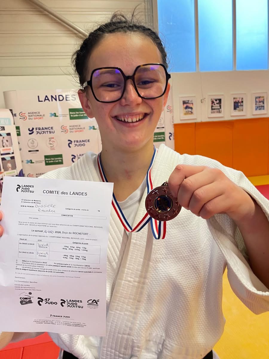 En Nouvelle-Aquitaine, la saison sportive 2025-2026 comporte une série de tournois et de championnats zonaux (par zone géographique) qui servent à qualifier les athlètes pour les championnats régionaux. Et c’est lors du tournoi de zone qui se déroulait à Dax le 17 janvier, dédié aux juniors évoluant dans les départements 64, 40 et 65, qu’Amandine Boissière, licenciée au Judo-club Montardonnais, a décroché sa place pour participer au tournoi régional de 1ère division qui se déroulera à Rochefort (17) le 14 mars.