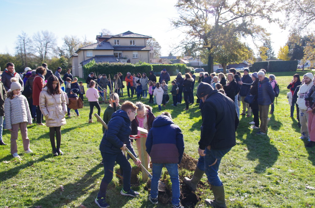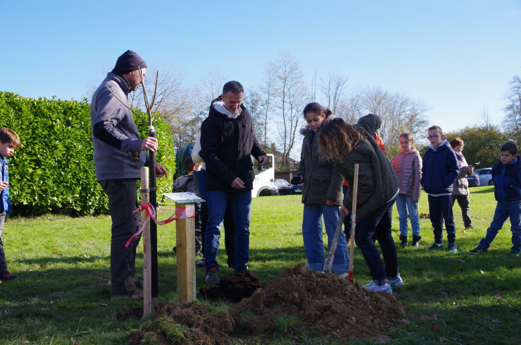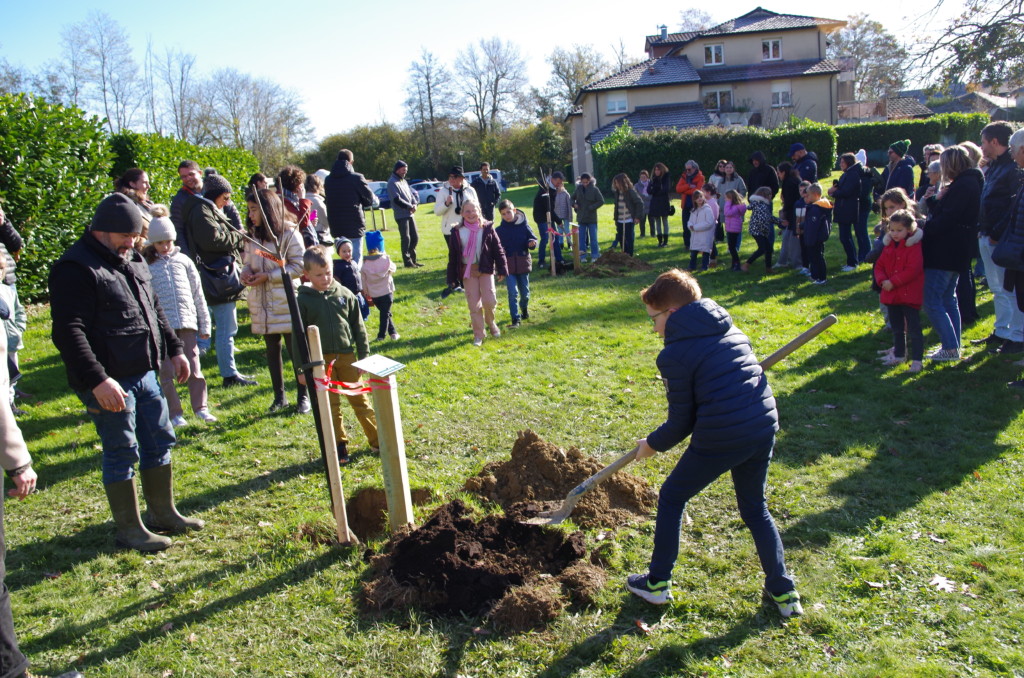 Chaque classe des écoles maternelle et élémentaire a choisi un arbre fruitier à planter dans le verger communal, qui, rappelons-le, est situé en cœur de village, près des logements sociaux. Les dix arbres sélectionnés sont : un mirabellier, deux pruniers, deux cerisiers, deux poiriers, deux pommiers et un plaqueminier (kaki).