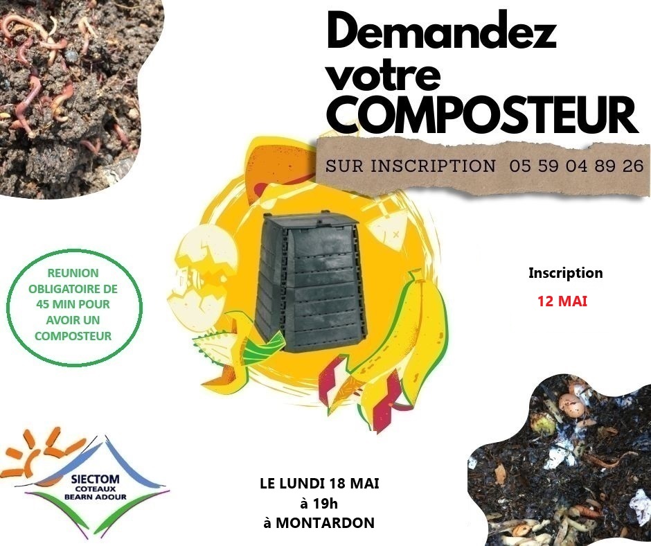 Une distribution de composteur se déroulera le lundi 18 mai à 19h à la salle d’activité (entrée face à l’entrée de l’école). Inscriptions obligatoires avant le 12 mai au 05 59 04 89 26. Une information de 45 minutes sera proposée aux habitants avant la remise des composteurs.