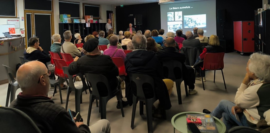Jeudi 25 septembre, près de 80 personnes se sont retrouvées à la Micro-Folie de Montardon pour une véritable plongée dans la mémoire collective du Béarn. À l’invitation du Foyer Rural, Jean Touyarou a entraîné son auditoire dans un voyage à travers l’école d’autrefois, l’oustaou, les pélères, les lendits et les marchés d’antan. Entre anecdotes savoureuses, récits familiaux et souvenirs vivants, il n’aura fallu que deux heures pour faire revivre un monde rural disparu, celui que les moins de vingt ans n’ont jamais connu et dont les traditions s’effacent peu à peu. Jean Touyarou a rappelé que ces rites, profondément ancrés dans le Béarn, se retrouvent aussi dans d’autres régions françaises, témoignant d’une société agricole qui structurait la vie quotidienne jusqu’aux années 1950-1960. Convaincant, chaleureux et plein d’humanité, l’orateur a su captiver son public et favoriser les échanges, offrant une soirée à la fois riche en émotions et en mémoire partagée.