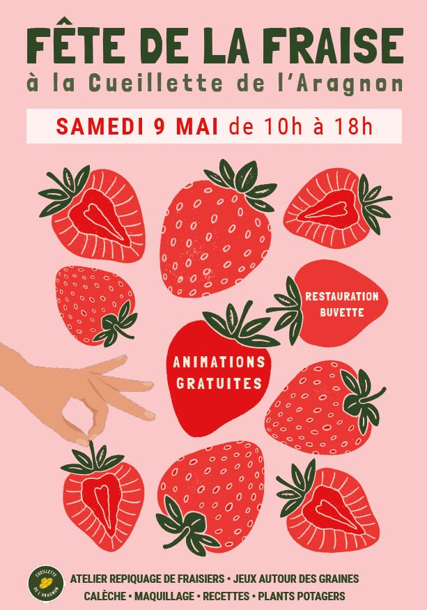 Préparez vos paniers et vos papilles ! Le samedi 9 mai, de 10 h à 18 h, la fraise sera la star à la cueillette de l’Aragnon. L’an dernier, l’événement avait attiré près de 3 000 visiteurs et permis de récolter plusieurs centaines de kilos de fraises bien juteuses. Cette année encore, la jeune équipe pleine d’entrain a concocté un programme aussi savoureux qu’amusant.