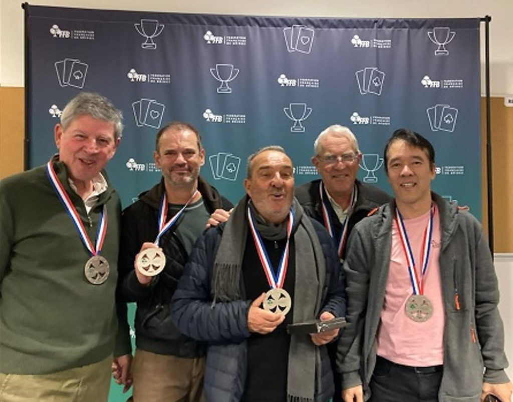 Les vice-champions de France de bridge (DLO4) : Jean-Pierre Coupeaud, Hervé Duffau, Jean Hayet, Jean-Louis Broitman et François Deschamps. Absent sur la photo : Éric Tonneau (capitaine).