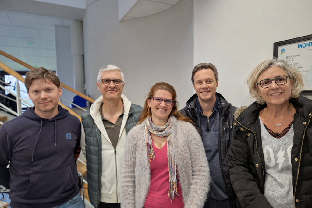 De gauche à droite, Mickaël (coordonnateur communal), Jean-Philippe, Myrtille, Pierre-Emmanuel et Sörenn.