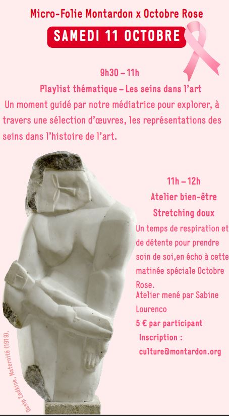 Au programme : une découverte guidée à travers une sélection d’œuvres, les représentations des seins dans l’histoire de l’art. (9h30 – 11h), suivie d’un atelier bien-être de stretching doux animé par Sabine Lourenco (11h – 12h, 5 €).