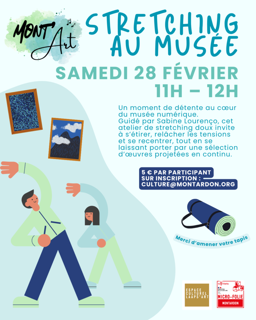 Un atelier original mêlant bien-être et culture sera proposé au Laaps’Art le samedi 28 février de 11h à 12h. Intitulé « Stretching au musée », ce rendez-vous est coorganisé par l’association Mont’Art et la Micro-Folie. Guidée par Sabine Lourenço, la séance offrira un moment de stretching doux au cœur du musée numérique, avec une sélection d’œuvres projetées en continu. L’objectif : associer détente et découverte artistique dans une atmosphère apaisante. Les participants sont invités à apporter leur tapis.